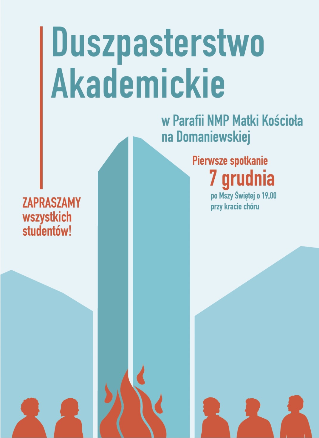 W niedziele 14 grudnia kolejne spotkanie duszpasterstwa dla studentów w naszej parafii. Jeszcze jest możliwość dołączenia się. Odwagi, nie bój się. Zbiórka po mszy świętej o godzinie 19:00 przy kracie chóru. Serdecznie zapraszamy wszystkich studentów.